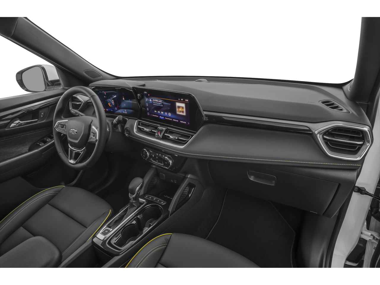 Adaptive Cruise & Sound Package (Adaptive Cruise Control and Bose Premium 7-Speaker Audio System Feature), Convenience Package (1 Type-A & 1 Type-C USB Charging-Only Ports, 120-Volt Power Outlet, Cabin Humidity Sensor, Driver & Front Passenger Illuminated Vanity Mirrors, Hands-Free Power Programmable Liftgate, Inside Rear-View Auto-Dimming Mirror, Single-Zone Auto Climate Control Air Conditioning, and Wireless Charging), Driver Confidence Package (Lane Change Alert w/Side Blind Zone Alert, Rear Cross Traffic Alert, and Rear Park Assist), Preferred Equipment Group 1SA, 1 Type-A & 1 Type-C USB Ports, 11 Diagonal HD Color Touchscreen, 2-Way Power Driver Lumbar Seat Adjuster, 3.17 Final Drive Axle Ratio, 4-Way Manual Front Passenger Seat Adjuster, 4-Wheel Disc Brakes, 6 Speakers, 6-Speaker Audio System Feature w/Amplifier, 8-Way Power Driver Seat Adjuster, ABS brakes, Air Conditioning, Alloy wheels, AM/FM radio: SiriusXM, Auto High-beam Headlights, Brake assist, Bumpers: body-color, Chevrolet Connected Access Capable, Compass, Delay-off headlights, Driver door bin, Driver vanity mirror, Dual front impact airbags, Dual front side impact airbags, Dual-Pane Panoramic Power Sunroof, Electronic Stability Control, Emergency communication system: OnStar and Chevrolet connected services capable, Evotex Seat Trim, Exterior Parking Camera Rear, Flat-Folding Front Passenger Seatback, Front anti-roll bar, Front Bucket Seats, Front Center Armrest, Front License Plate Bracket, Front reading lights, Front wheel independent suspension, Fully automatic headlights, Heated door mirrors, Heated Driver & Front Passenger Seats, Heated front seats, Heated steering wheel, Illuminated entry, Knee airbag, Low tire pressure warning, Occupant sensing airbag, Overhead airbag, Overhead console, Panic alarm, Passenger door bin, Passenger vanity mirror, Power door mirrors, Power driver seat, Power steering, Power windows, Radio data system, Radio: AM/FM Stereo Audio System, Rear seat center armrest, Rear side impact airbag, Rear window defroster, Rear window wiper, Remote keyless entry, Ride & Handling Suspension, Security system, SiriusXM, Speed control, Split folding rear seat, Spoiler, Steering wheel mounted audio controls, Summit White Two-Tone Roof, Tachometer, Telescoping steering wheel, Tilt steering wheel, Traction control, Trip computer, Variably intermittent wipers, Wheels: 17 High Gloss Black Machined Aluminum, and Wireless Apple CarPlay/Android Auto.
